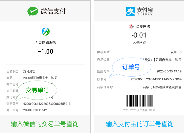 请输入支付宝的交易单号或微信的订单号